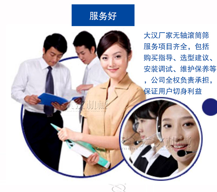 大漢廠家無軸滾筒篩服務(wù)項目齊全,包括購買指導(dǎo)、選型建議、安裝調(diào)試、維護保養(yǎng)等,公司全權(quán)負(fù)責(zé)承擔(dān),保證用戶切身利益。