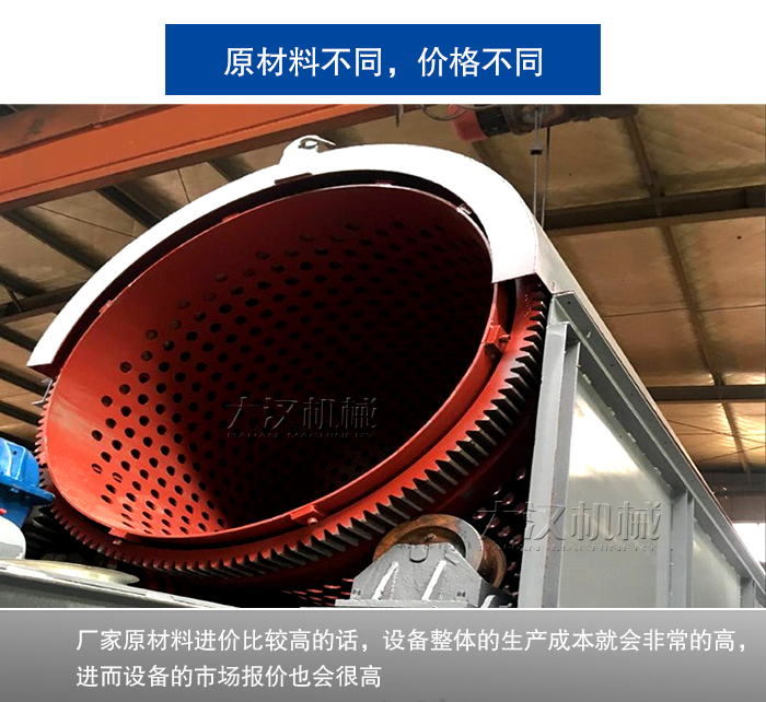 質(zhì)量好的無軸滾筒篩價(jià)格也會更高些,因?yàn)椴牧线x用優(yōu)良、技術(shù)較為精湛,花費(fèi)的總制造成本也會較高些,在后期使用中,設(shè)備的壽命更長、故障少、費(fèi)用低;反之,劣質(zhì)設(shè)備的購買價(jià)格雖便宜,不過后期花費(fèi)更高,使用效果欠佳。