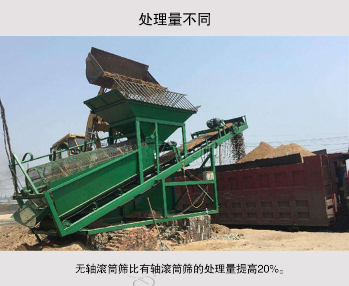 無軸滾筒篩由于采用無軸設計,其產(chǎn)量比有軸滾筒篩的處理量會提高20%。
