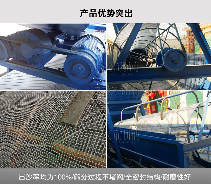 1)無論干沙、濕沙,出沙率均為100%,產(chǎn)量大且沙石分離,成品粒度均勻,篩分產(chǎn)量范圍在50-800噸/時(shí);