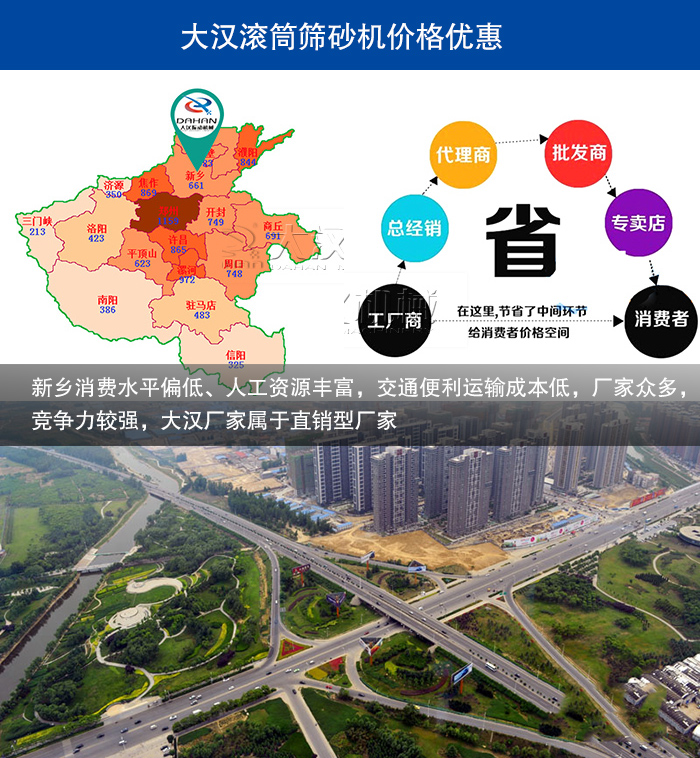 3、新鄉(xiāng)地區(qū)消費(fèi)水平偏低,針對(duì)購(gòu)買用戶群體多為周邊城市,從消費(fèi)者出發(fā),我們廠家制定價(jià)格一般偏低,另外大漢廠家屬于直銷型廠家,無(wú)中間商,滾筒篩沙機(jī)價(jià)格更便宜;