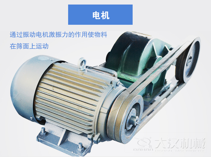 作用:通過(guò)振動(dòng)電機(jī)激振力的作用使物料在篩面上運(yùn)動(dòng)。