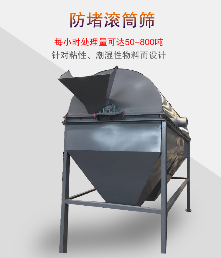 防堵滾筒篩主要是針對粘性、潮濕性物料而設(shè)計的一種滾筒篩,排除了普通振動篩在篩分物料時出現(xiàn)的篩孔堵塞問題,提高了篩分效率。