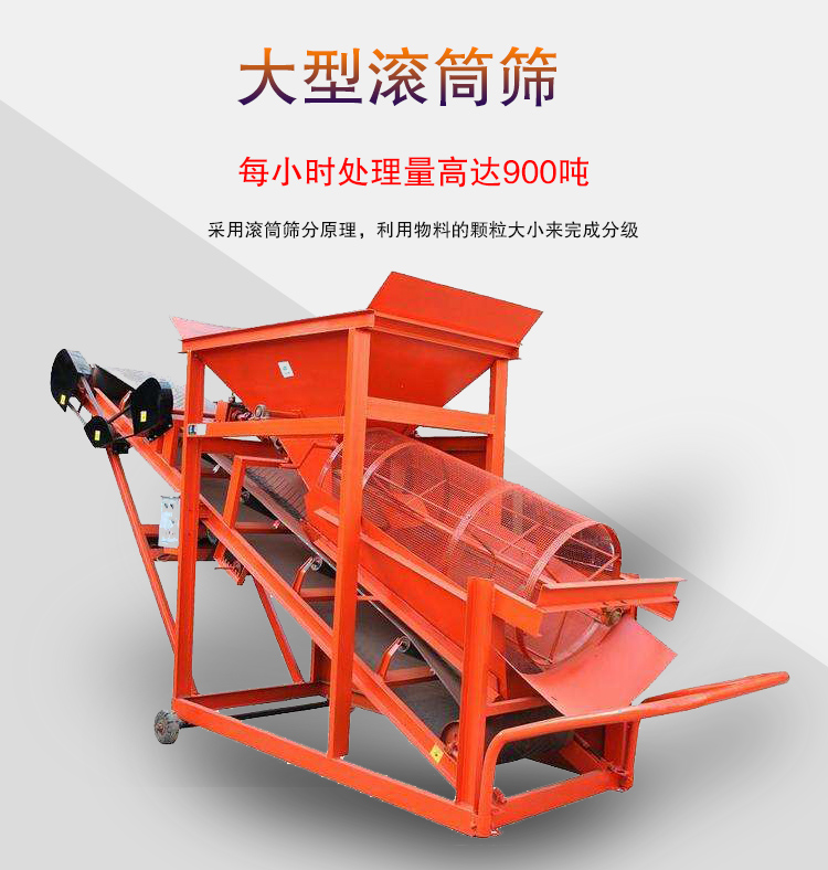大型滾筒篩又叫大型滾筒篩沙機,是指針對產(chǎn)量較大的用戶選擇的型號,采用滾筒篩分原理,利用物料的顆粒大小來完成分級,克服了圓振動篩和直線篩在篩分較濕物料時出現(xiàn)的篩網(wǎng)堵塞問題,提高了篩分效率。