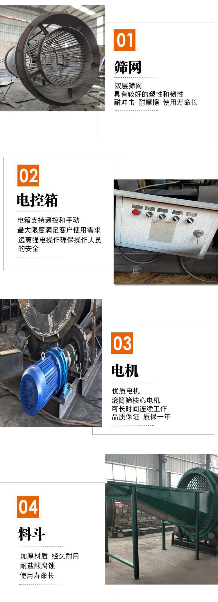 2、滾筒篩分原理,物料伴隨著不停的翻轉(zhuǎn)滾筒來完成篩分的同時,還可以防止堵網(wǎng),提高篩分效率。