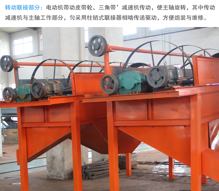 轉(zhuǎn)動(dòng)聯(lián)接部分:電動(dòng)機(jī)帶動(dòng)皮帶輪、三角帶’減速機(jī)傳動(dòng),使主軸旋轉(zhuǎn),其中傳動(dòng)減速機(jī)與主軸工作部分,勻采用柱銷(xiāo)式聯(lián)接器相嚙傳遞驅(qū)動(dòng),方便組裝與維修。